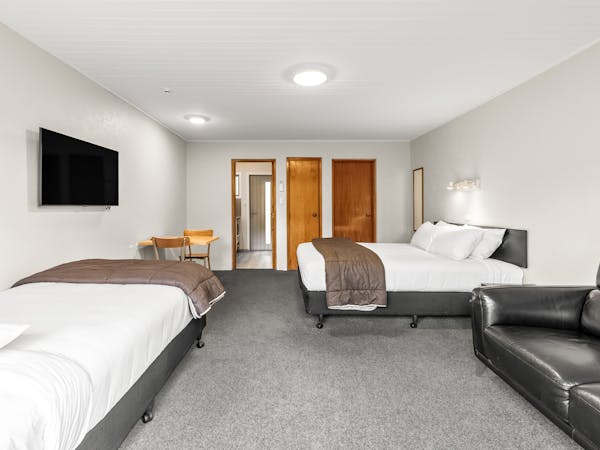 The rooms are furnished with a queen bed & a king single bed accommodating 1-3 people
